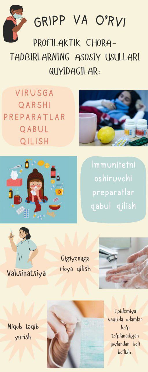 #infografika «Gripp va OʻRVI» Sanepidqoʻmita Qarshi tumani boʻlimi Axborot xizmati https://t.me/sanepidqom_qarshitum
