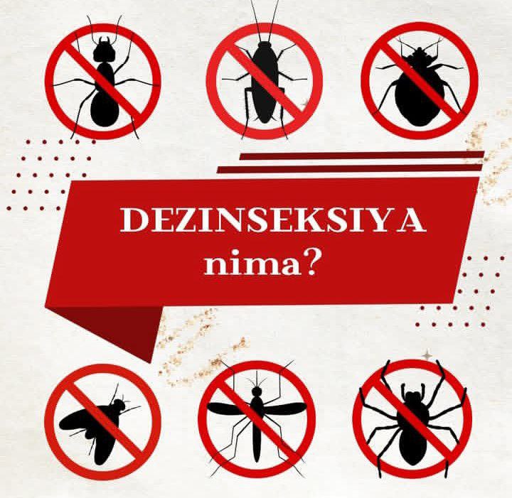 ❓Dezinseksiya nima? ✅Dezinseksiya — yuqumli kasallik qoʻzgʻatuvchilarni tarqatadigan zararkunanda boʻgʻimoyoqlilarni yoʻqotish uchun qoʻllanadigan chora-tadbirlar majmui. ❓Dezinseksiyada ishlov berish qancha vaqt davom etadi? ✅Odatda ishlov berish 30 daqiqadan 1,5 soatgacha davom etadi. ❓Dezinseksiya oʻtkazilgan xonaga qancha vaqt qaytish mumkin emas? ✅Xonalar ekspozitsiyasi…