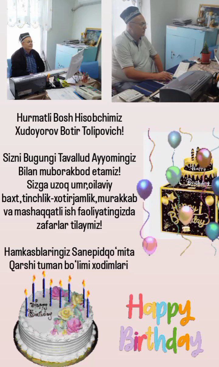 #tabrik Hurmatli Bosh Hisobchimiz Xudoyorov Botir Tolipovich! Sizni Bugungi Tavallud Ayyomingiz Bilan muborakbod etamiz! Sizga uzoq umr,oilaviy baxt,tinchlik-xotirjamlik,murakkab va mashaqqatli ish faoliyatingizda zafarlar tilaymiz! Hamkasblaringiz Sanepidqoʻmita Qarshi tuman boʻlimi xodimlari https://t.me/sanepidqom_qarshitum