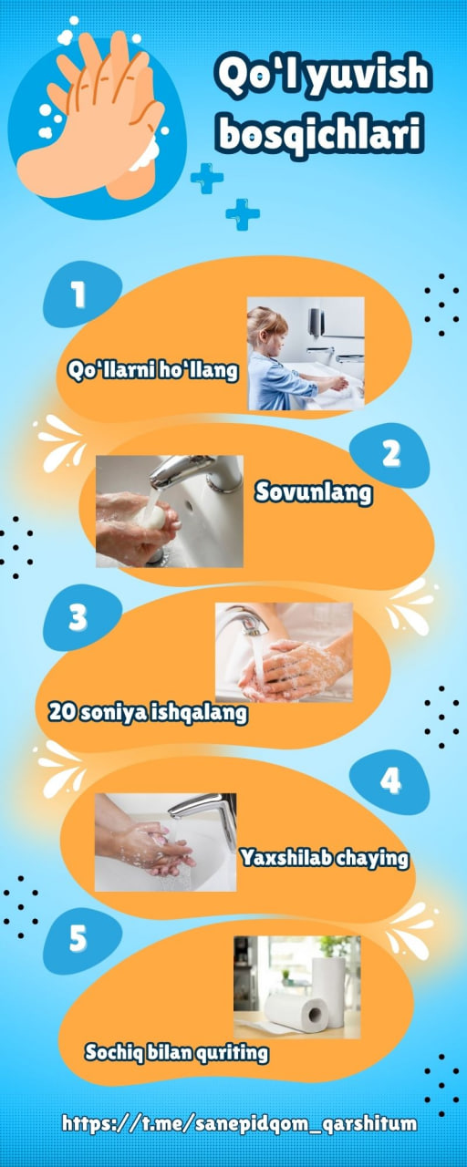 #infografika «Toza qo’llar — sog’lom kelajak» «Sanepidqoʻmita Qarshi tuman boʻlimi Axborot xizmati https://t.me/sanepidqom_qarshitum