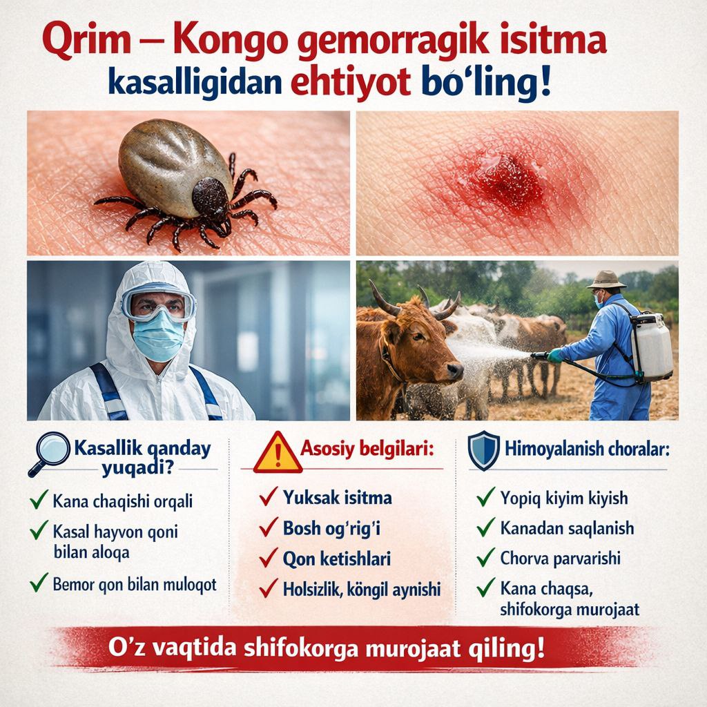 #infografika «Qrim — Kongo gemorragik isitma kasalligidan ehtiyot bo’ling! » «Sanepidqoʻmita Qarshi tuman boʻlimi Axborot xizmati https://t.me/sanepidqom_qarshitum