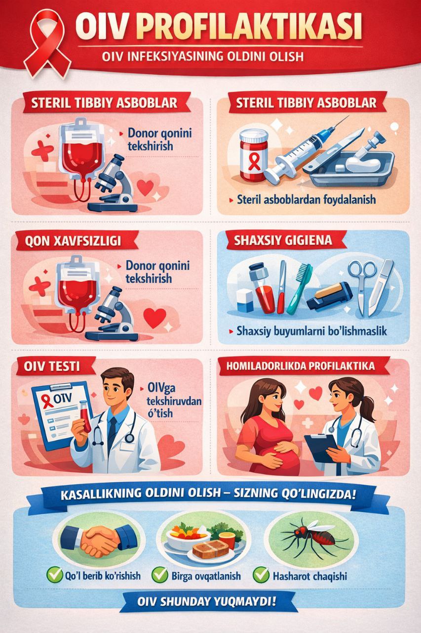 #infografika «OIV profilaktikasi» «Sanepidqoʻmita Qarshi tuman boʻlimi Axborot xizmati https://t.me/sanepidqom_qarshitum