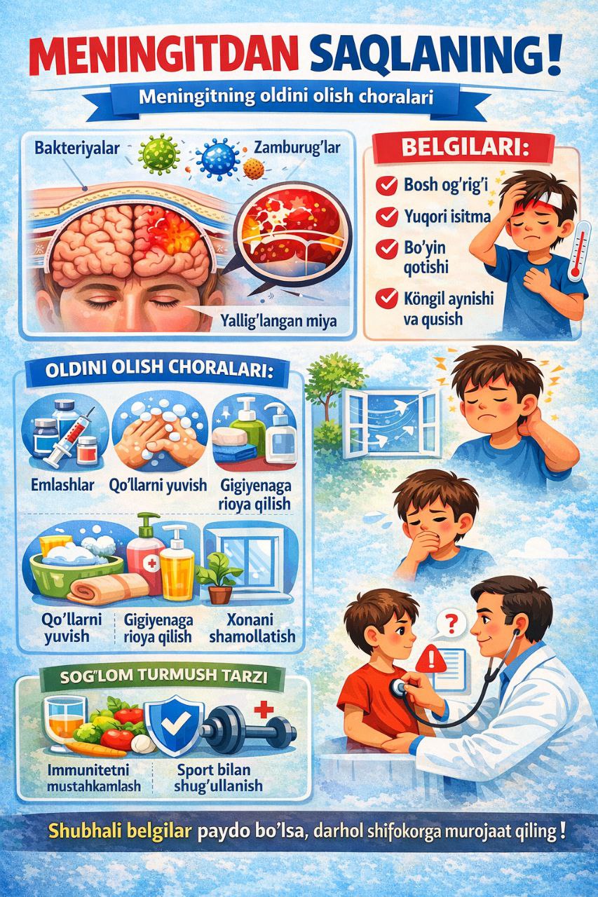 #infografika «Meningitdan saqlaning» «Sanepidqoʻmita Qarshi tuman boʻlimi Axborot xizmati https://t.me/sanepidqom_qarshitum