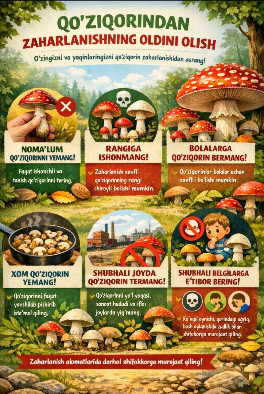 #infografika «Qoʻziqorindan zaharlanishning oldini olish» Sanepidqoʻmita qarshi tuman boʻlimi Axborot xizmati https://t.me/sanepidqom_qarshitum