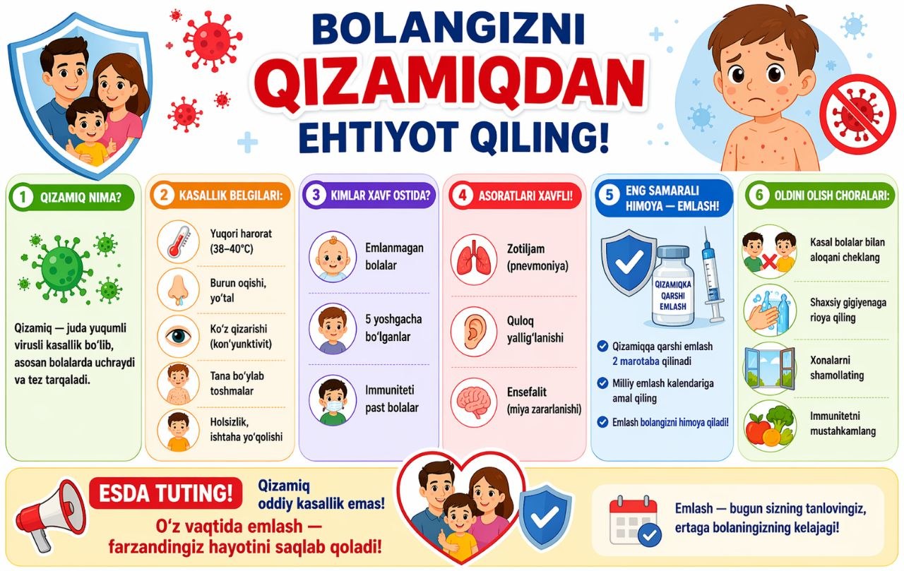 #infografika «Bolangizni qizamiqdan ehtiyot qiling!» Sanepidqoʻmita qarshi tuman boʻlimi Axborot xizmati https://t.me/sanepidqom_qarshitum