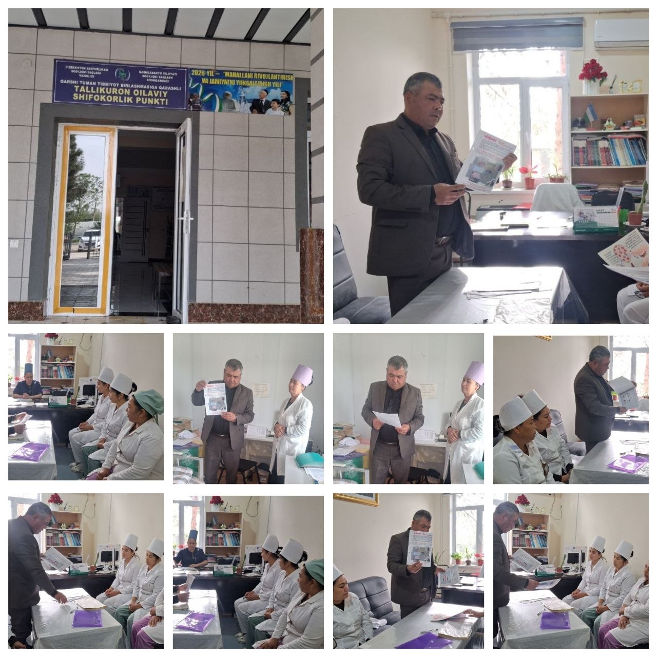 Sanepidqoʻmita Qarshi tuman boʻlimi Parazitologiya boʻlimi xodimlari tomonidan Tallikuron OSHP va Shodlik MFY Chorbogʻ boygʻundi tibbiyot xodimlari uchun O’zb. Res. SSVning 121-sonli va 473-sonli buyruqlari ijrosini ta’minlash hamda Sanepidqoʻmita Viloyat Boshqarmasining 14.04.2026-yil 771-sonli koʻrsatma xati ijrosini ta’minlash maqsadida «Bezgak va…
