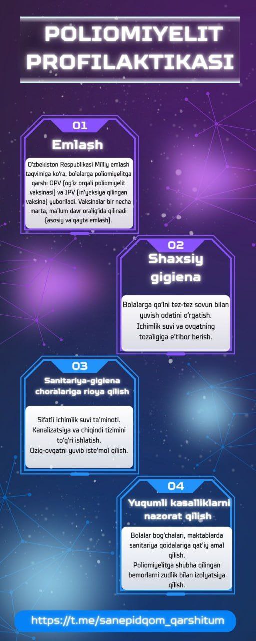 #infografika » » Poliomiyelit profilaktikasi » «Sanepidqoʻmita Qarshi tuman boʻlimi Axborot xizmati https://t.me/sanepidqom_qarshitum