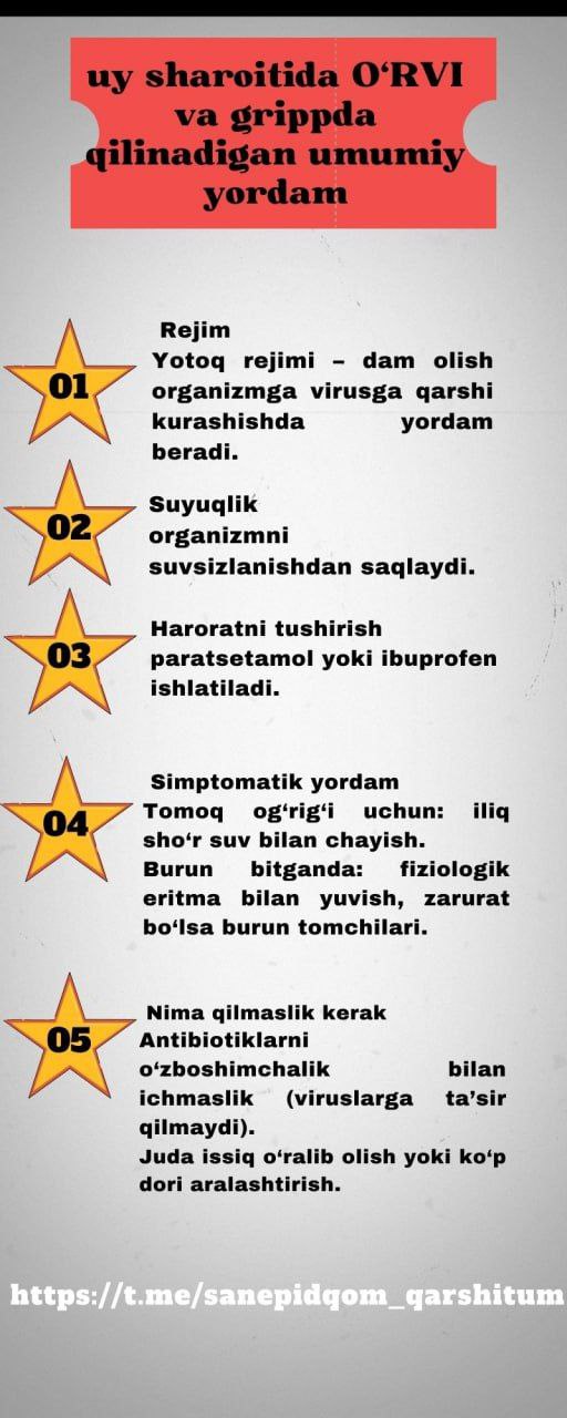 #infografika » » O’rvi va grippda qilinadigan umumiy yordam» «Sanepidqoʻmita Qarshi tuman boʻlimi Axborot xizmati https://t.me/sanepidqom_qarshitum