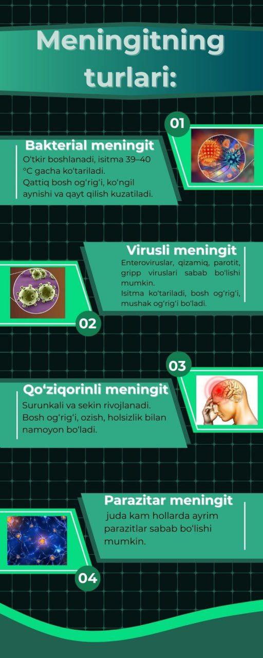 #infografika » Meningitning turlari» » Sanepidqoʻmita Qarshi tuman boʻlimi Axborot xizmati https://t.me/sanepidqom_qarshitum