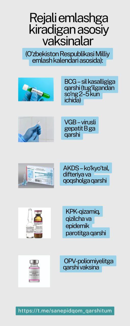 #infografika » » Rajali emlashga kiradigan asosiy vaksinalar» «Sanepidqoʻmita Qarshi tuman boʻlimi Axborot xizmati https://t.me/sanepidqom_qarshitum